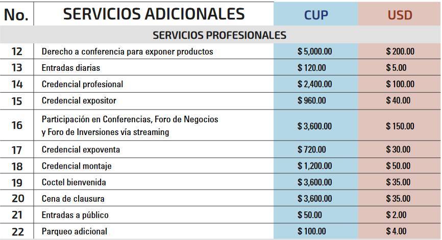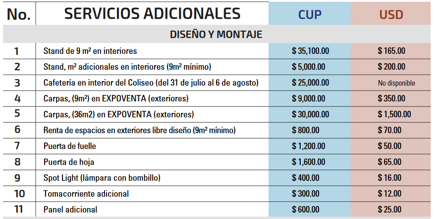Se aplicará un recargo de 20% para todos aquellos servicios requeridosuna vez iniciado el montaje general de la feria.